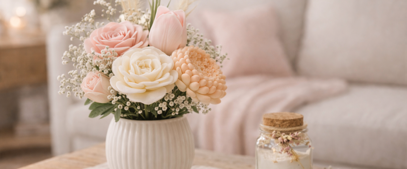 Fleurs en cire parfumées, bouquets décoratifs et créations artisanales inspirées des senteurs de Grasse.